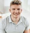 Two individuals wearing face masks are situated in an office environment, with one standing and observing a computer screen that the other is using.
